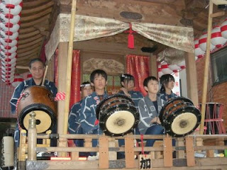 囃子方の人数は5人しかいませんので、私の女房まで動員です。(1週間前からお囃子のおさらい特訓を繰り返しました。)